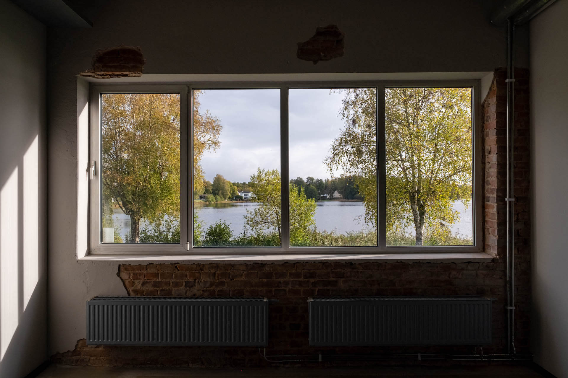 Fastigheten har stora fönster mot vattnet och parkering direkt vid entrén, med närhet till Sandareds centrum och vardagsservice.